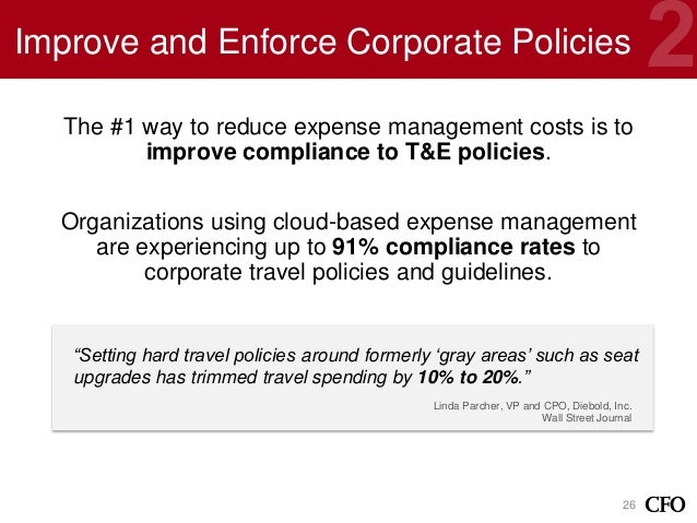 In travel management, it is particularly helpful to identify payment Corporate travel cards (including all plastic, ghost, or lodged accounts) Airfare Auto reducing spend limits, increased training around T&E expense management and using card data to identify out-of-policy spend ... View Document